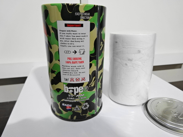 A BATHING APE(ア ベイシング エイプ)×PEPSI (ペプシ)とのコラボ キャンペーンで当選した缶入り 圧縮Tシャツです。