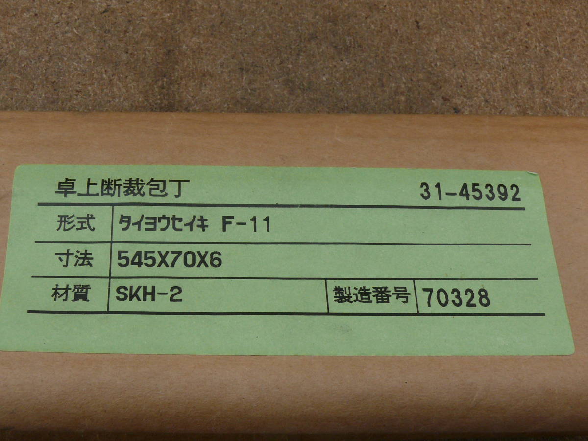 断裁包丁 545×70×6 木箱 幅:約589mm 奥行:約44mm 高さ:約110mm