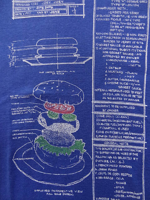 アイテム詳細:ヴィンテージグリルハンバーガーレシピプリントリブTシャツ