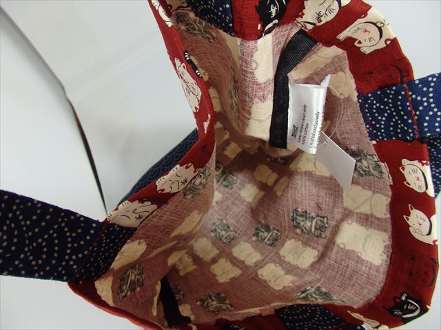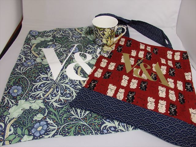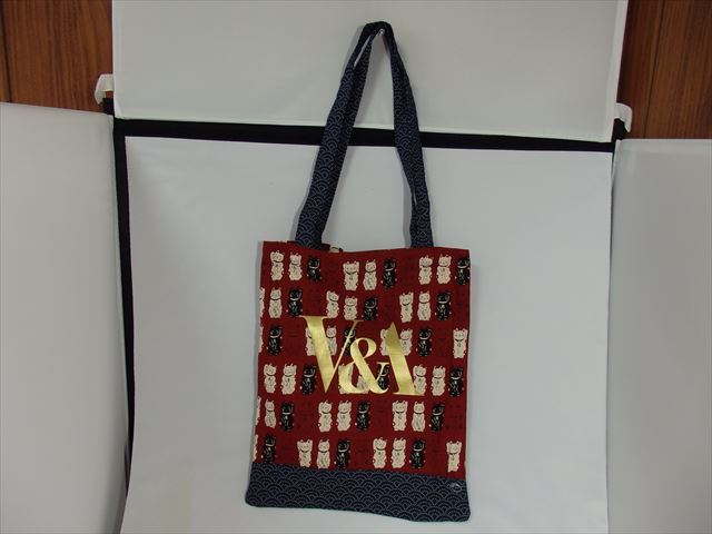 ★新品未使用★ヴィクトリア&アルバート博物館(V&A)「ラッキーキャット」(招き猫)トートバッグ「波千鳥」柄 V&A展(ロンドン)LA50