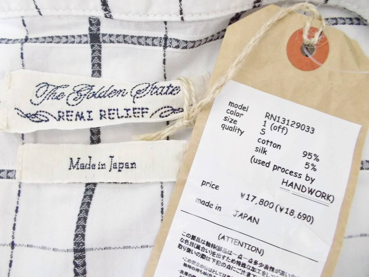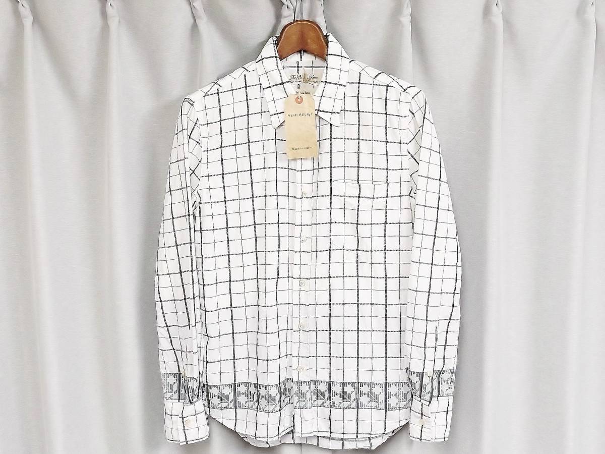 ◆REMI RELIEF レミレリーフ シルク混 コットン シャツ ジャガード ヴィンテージ ドビーチェック ホワイト ネイティブ オルテガ トライバル