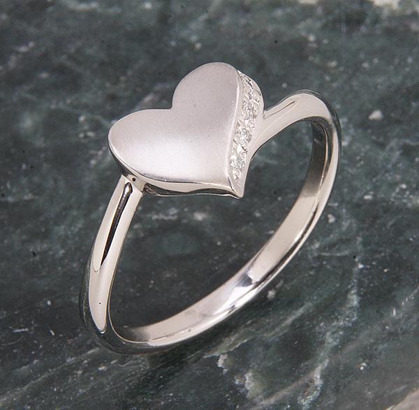 可愛らしいハートのモチーフにメレダイアが輝くリングです。