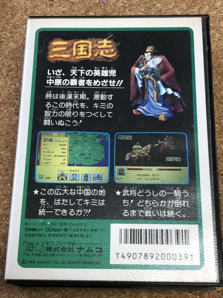 電池交換して発送♪ ファミコンソフト 三国志 中原の覇者 箱付き 端子メンテナンス済 動作品 同梱可能 FC ファミリーコンピュータ