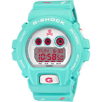 斬新なスタイル・先進性を世界の若者に発信し続けている両者のスピリットが共鳴したジョニー・カップケーキとのコラボレーションモデルで、ベースモデルはビッグケースのGD-X6900を採用し、ポップなグリーンをベースカラーとしてバンドにはカップケーキに散りばめるスプリンクル(カラースプレー)をイメージしたカラフルなデザインを施すことにより、よりポップなイメージを追求しています。また文字板のブランドロゴ・遊環・液晶部・ボタンの色埋め部には、ポップなカラーを用いてカラフルなデザインに仕上げ、バックライトはカップケーキのクリームがこぼれる様をモチーフに表現し、ユニークで遊び心溢れるデザインになっています。専用パッケージと合わせ、ジョニー・カップケーキの世界観をプロダクト全体で表現しています。