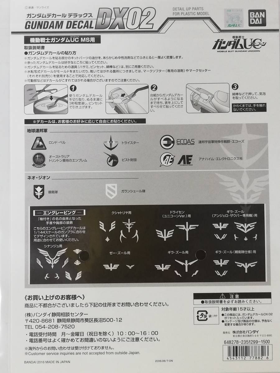 | 商品名 | ガンダムデカールDX02 ガンダムUC MS用 |