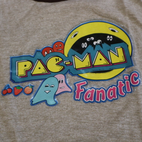 超美品 80s USA製 PACMAN パックマン リンガー Tシャツ XL ブラウン アイロン ラメプリント Midway ナムコ キャラクター ヴィンテージ