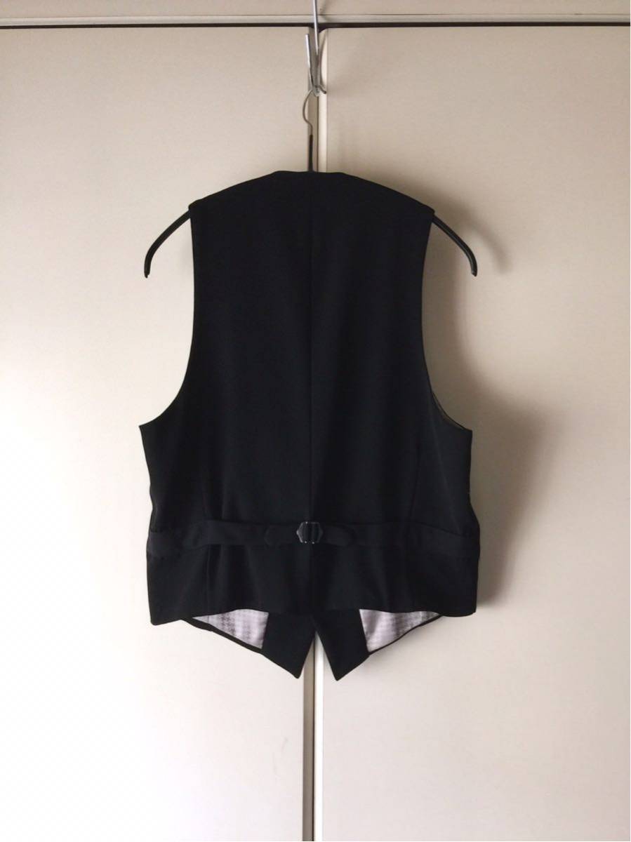 裏ストラップ付きの一般的なジレベストになります。裏地がシャンパンゴールドの千鳥柄です。日本製のコスパが効いたアイテムになります。