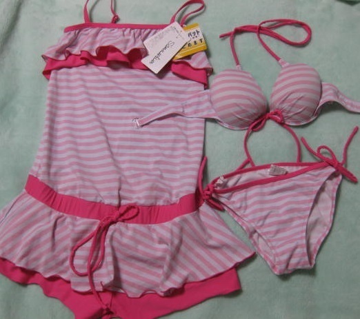 ★未使用 水着 ピンク 体型カバー 9M ファッション レディースファッション スポーツ 海 プール 旅行 ワンピース セット 女性 女子