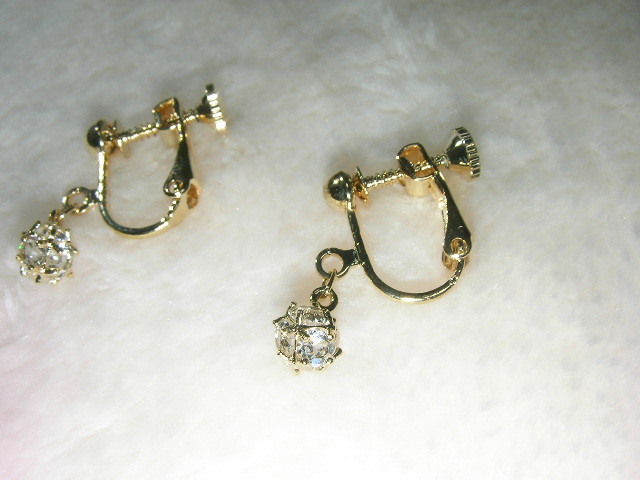 ラインストーンがたくさんちりばめれたボールが、小さいながらとても存在感があり上品でおしゃれなイヤリングです^^ノシ