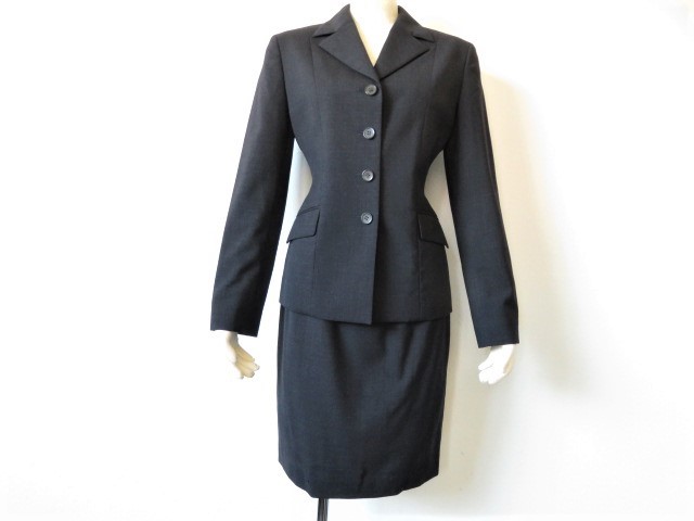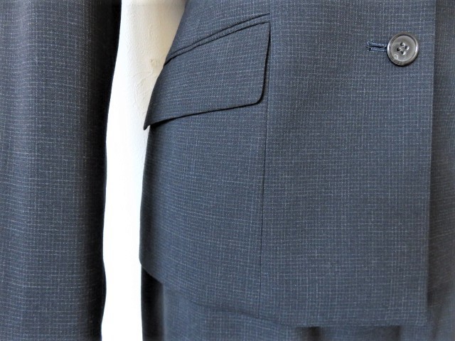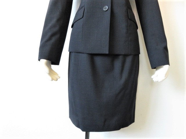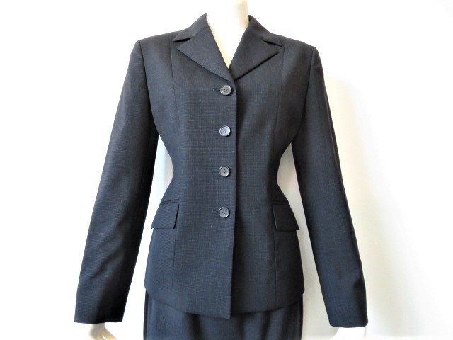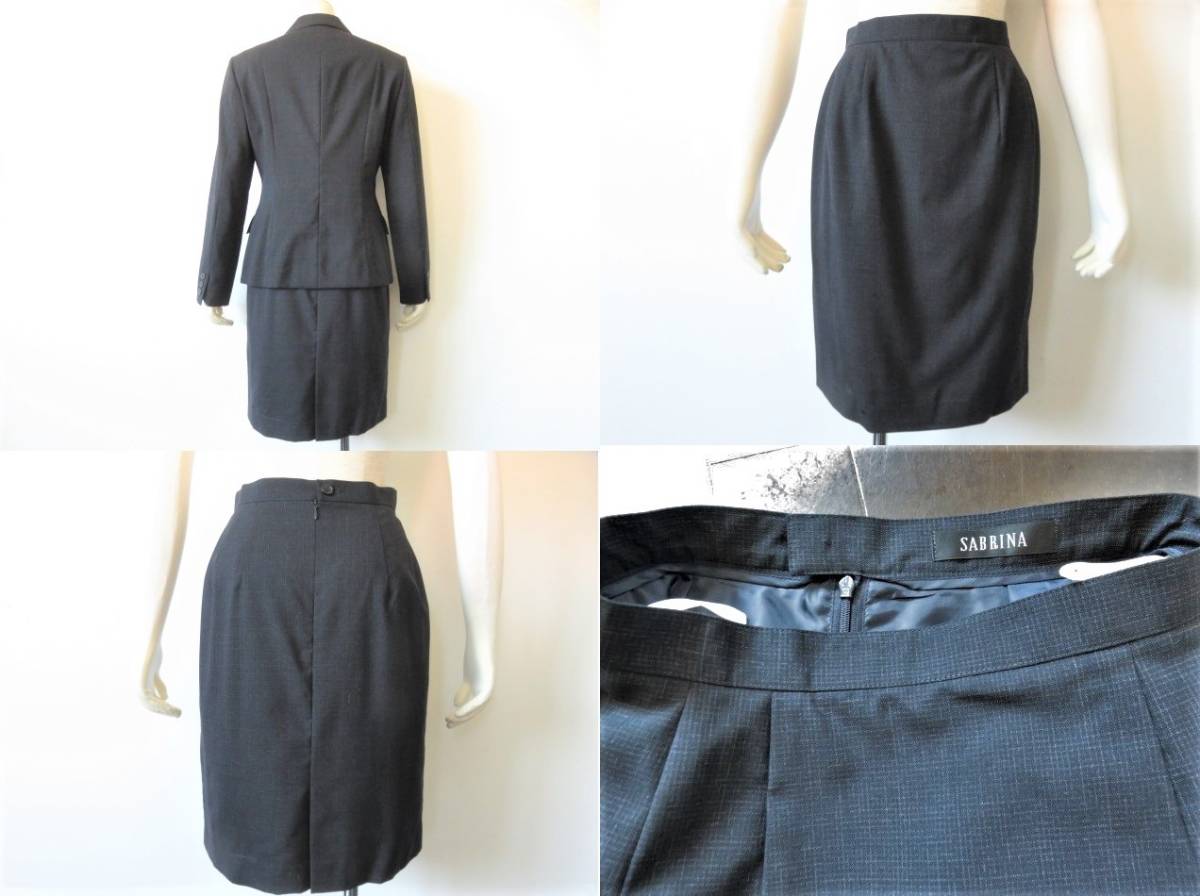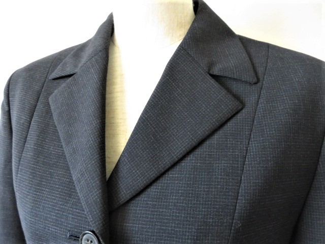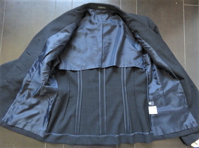 【SABRINA】サブリナの高級ウールスーツ、お色は濃紺、春夏シーズン素材、うっすらチェック柄が入っています。