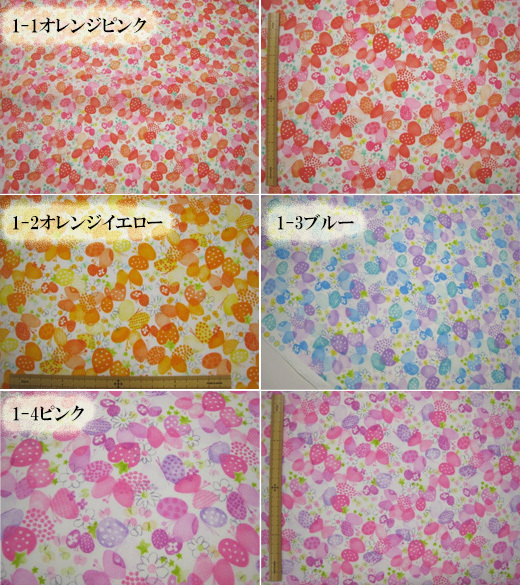 YOB 販売色オレンジピンクのみ 長さ1.3m ストロベリーバタフライ 水彩画調 colorful 苺 蝶々 ブロード 生地