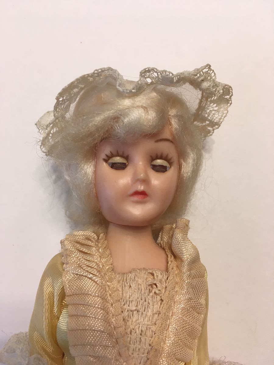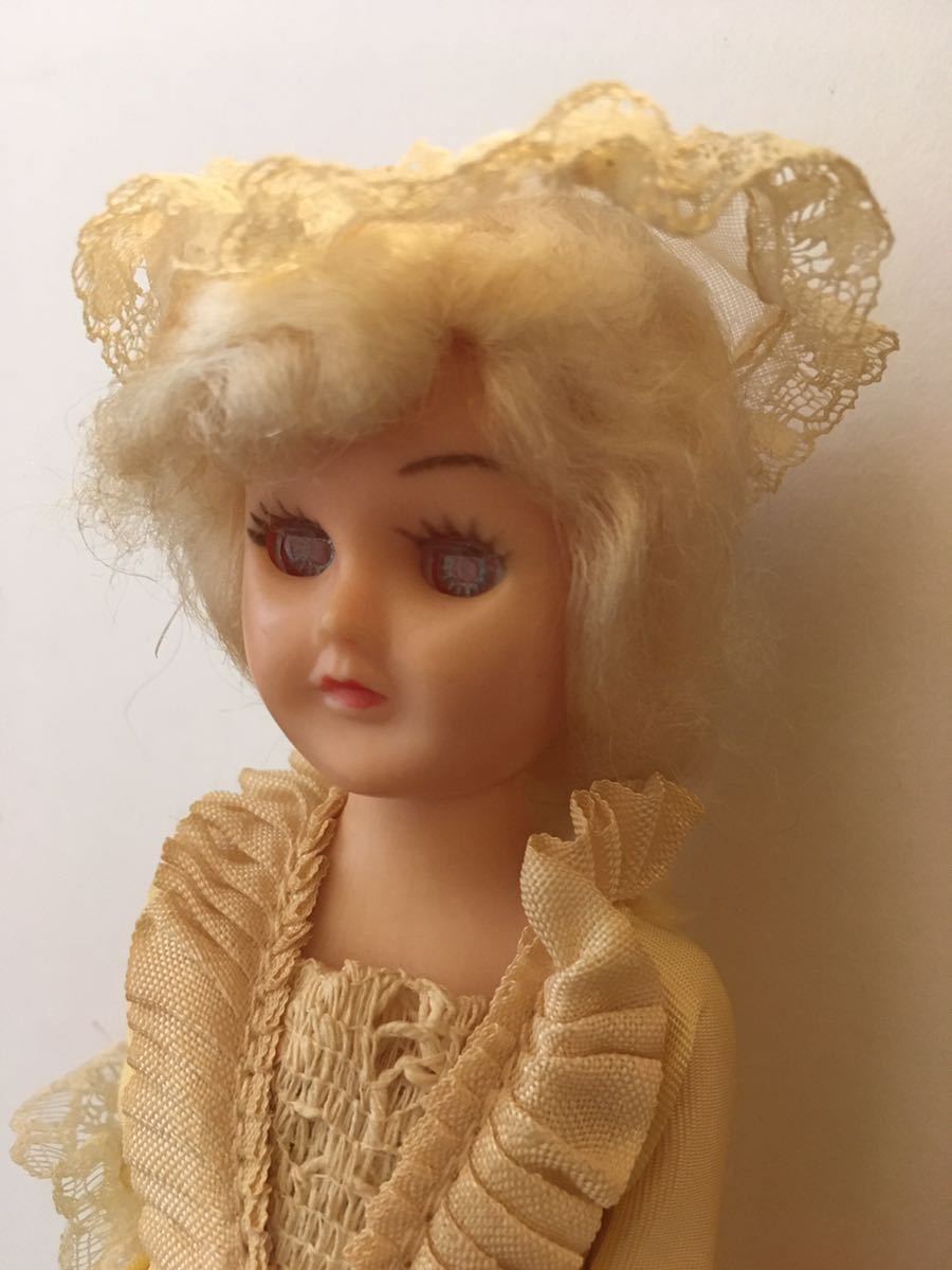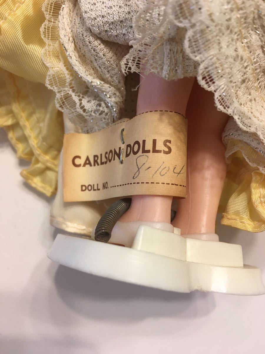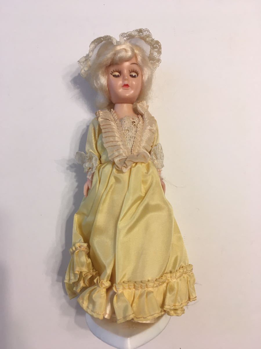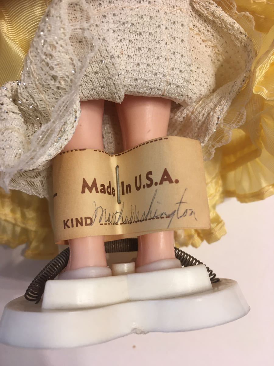 Antique Carlson Doll Martha Washington in yellow colonial dress. Eyes are clear. Rare. Made in USA