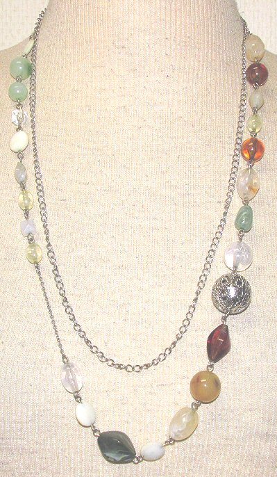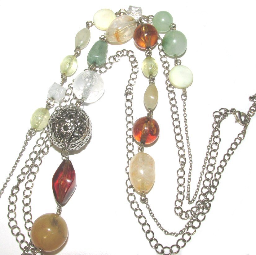 グリーン×ブラウン系・マルチストーン×シルバーチェーン★ネックレス