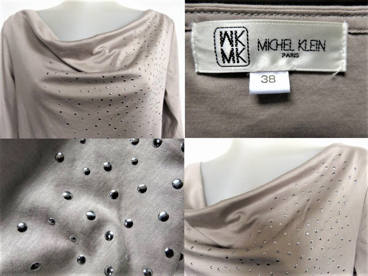 ■新品同様上質美品【MICHEL KLEIN】ミッシェルクラン高級光沢カットソー送料格安185円ベージュ【38】 w112