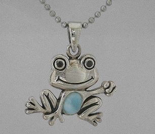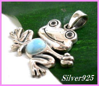 シルバー925銀の天然石ラリマー[ドミニカ産]スマイリーフロッグ カエル ペンダント