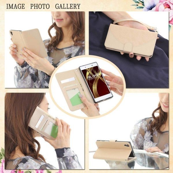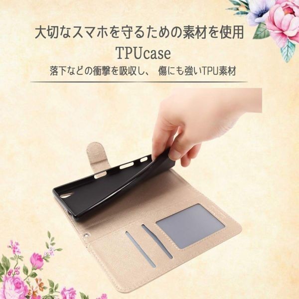 手帳型ならではの保護性能・横置きスタンド機能・カード収納を装備。