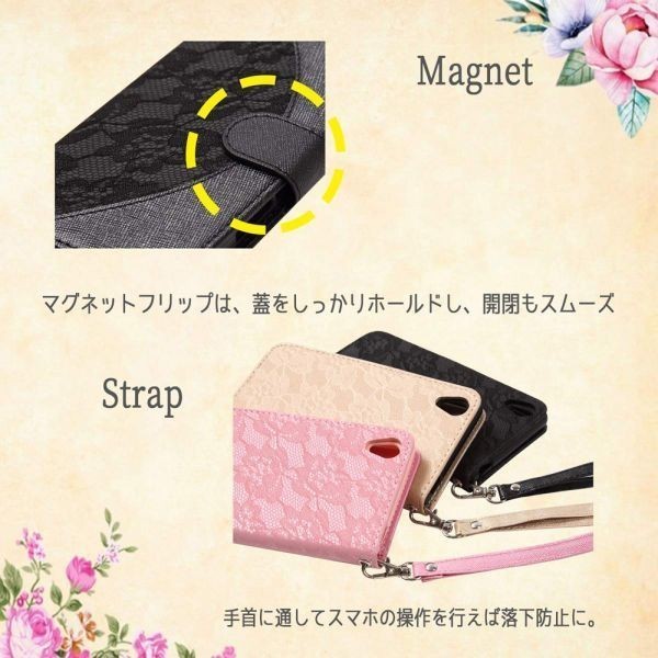 FRL-SHOP◆ iPhone SE(第2世代)/ iPhone8 / iPhone7 ケース ◆ 花柄 レース ベルト 手帳型 レザー カバー 手帳 F-31 pk★