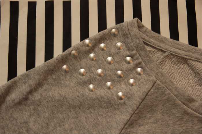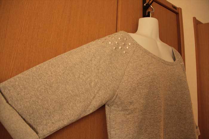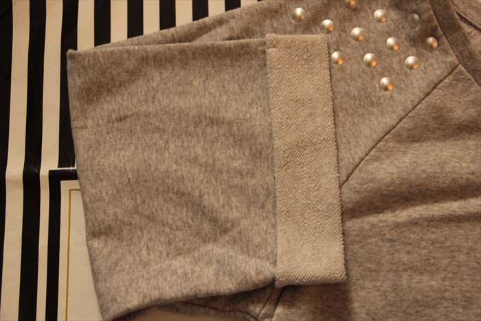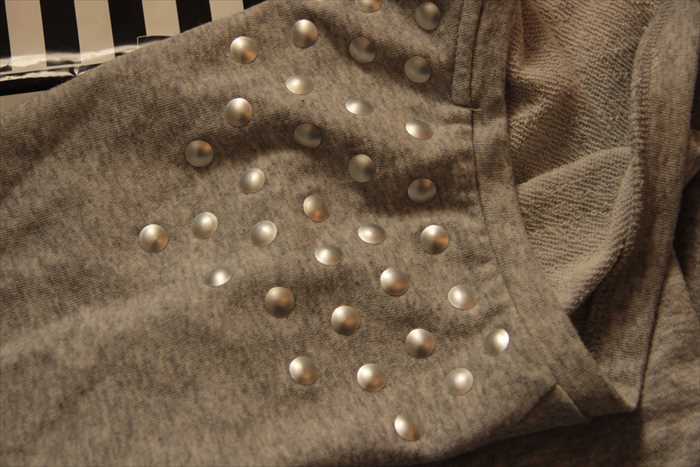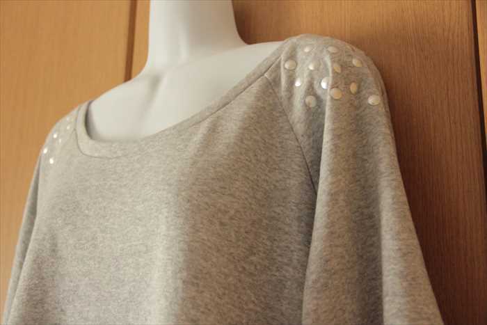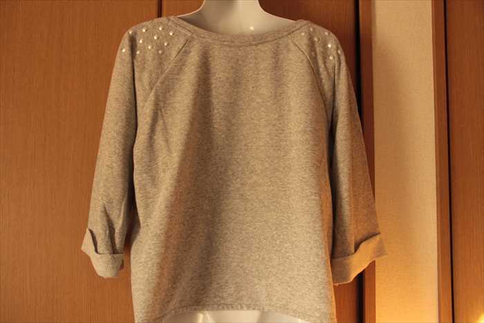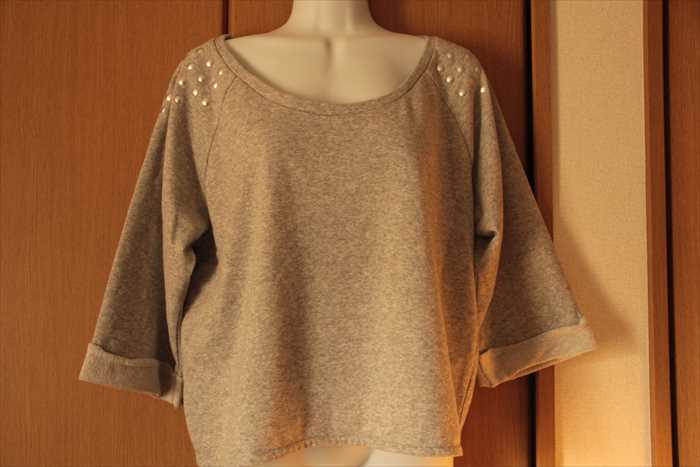 ★2,3回着!肩スタッズ 裏毛 薄手 7分袖 ジャージカットソー グレー系L★ | |||