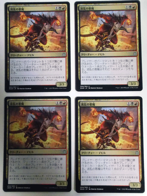 MTG日本語/4枚セット/波乱の悪魔/灯争大戦/アンコモンです。中古品扱いですので、神経質な方、美品をお求めの方は入札をご遠慮ください。 |