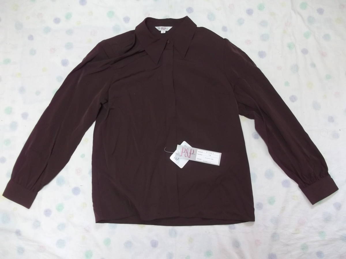 定形外郵便可 制服 事務服 お出かけにも? シャツ?ブラウス? 17号 茶色系? 隠しボタン