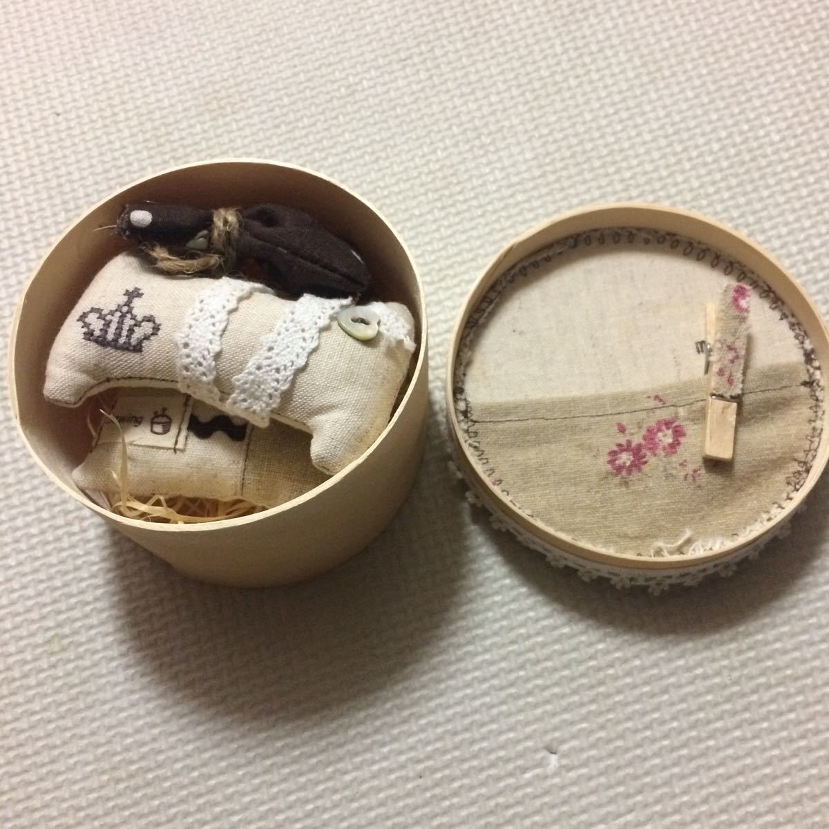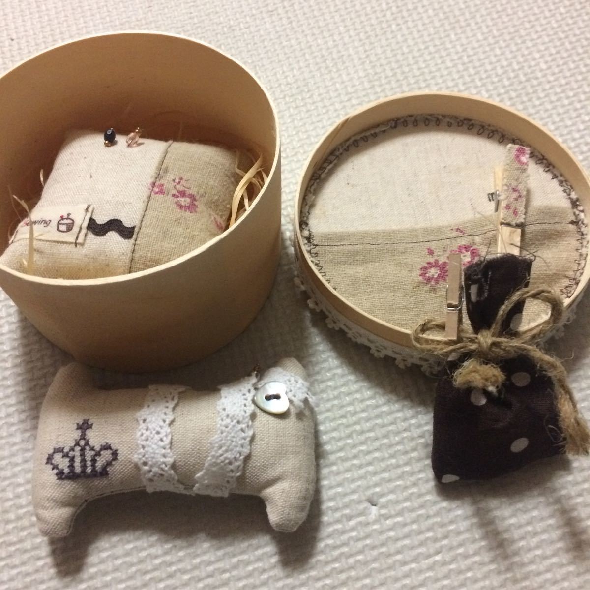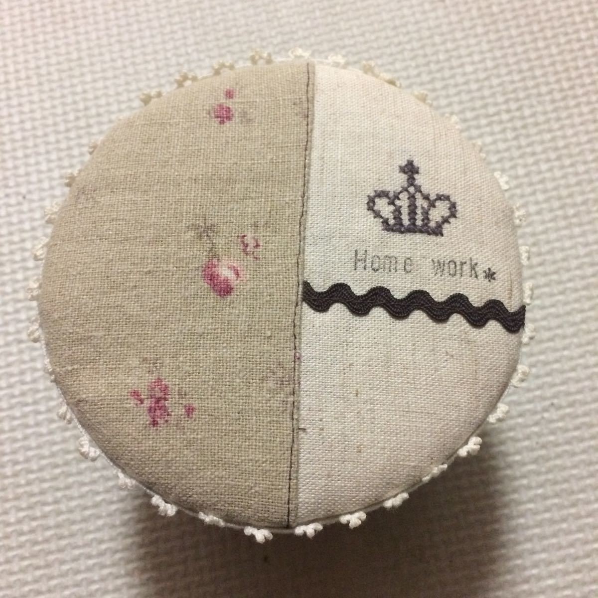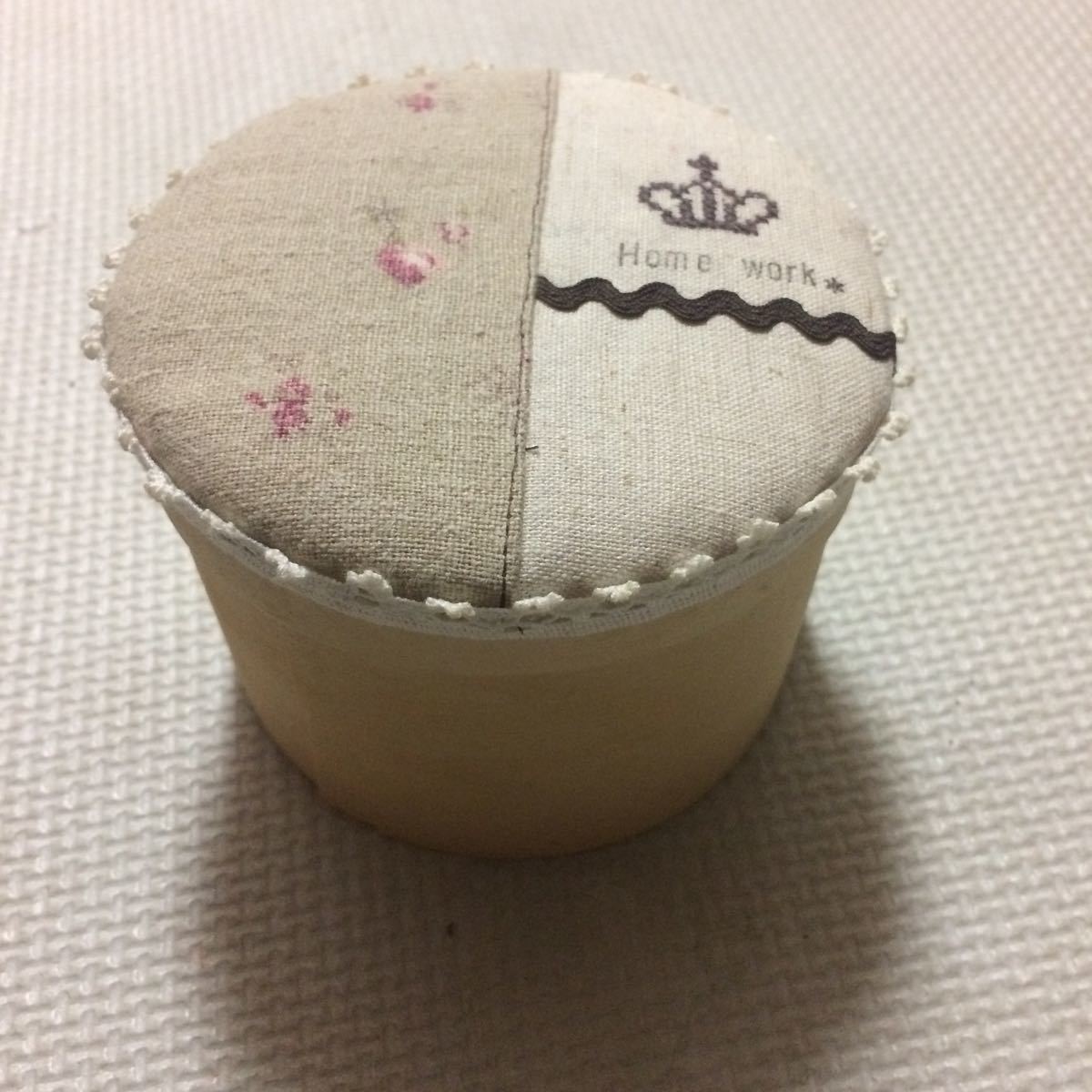 購入後、しまってありました。針山が2つ入っています。直径11cm高さ6.5cmくらいです。