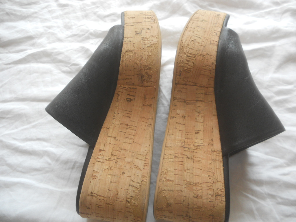 やわらかなレザー、コルクヒールでいろもベーシックカラーなので秋口まで