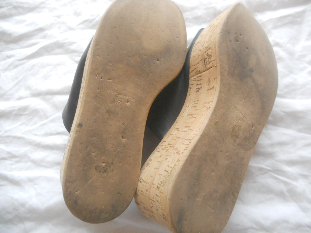 のサボ(ブラック)、素材は牛革(レザー)、サイズ37(22.5~23センチくらい)