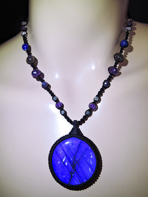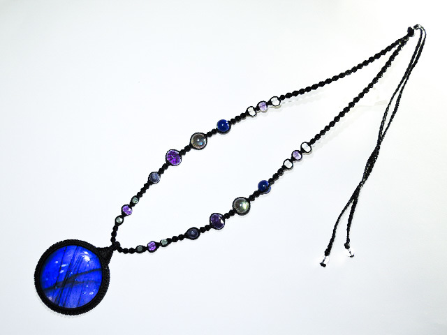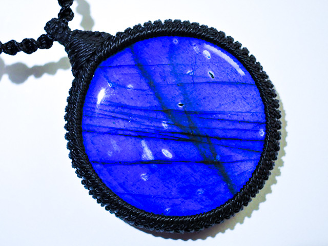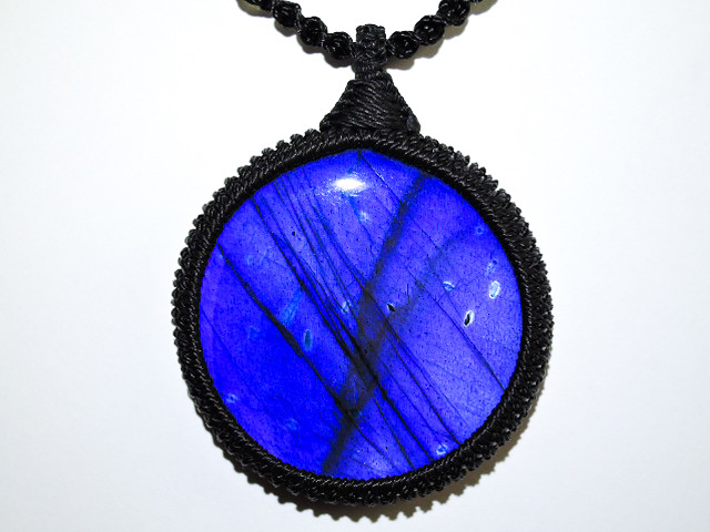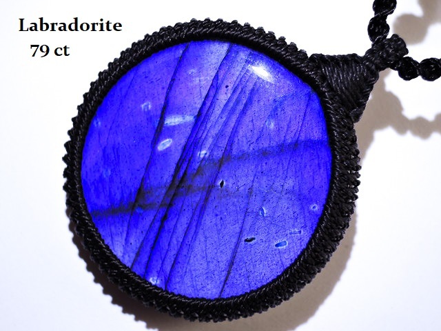 ★極上★神秘のディープブルーラブラドライト★79ct★天然石ハンドメイドネックレスペンダント★マクラメ編み★男女フリーサイズ★ kamesan