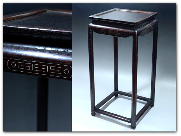 時代唐物銀象嵌唐木紫檀高台■花台香炉台 AA00-14