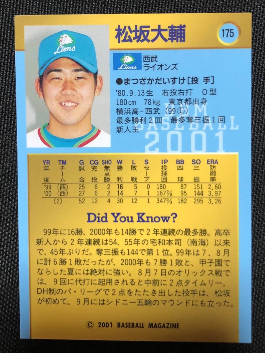 BBM2001 ベースボールカード 松坂大輔 サインパラレル (印刷)No.175