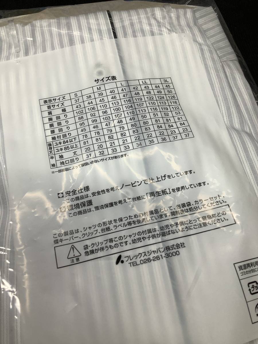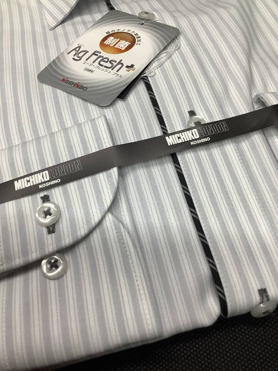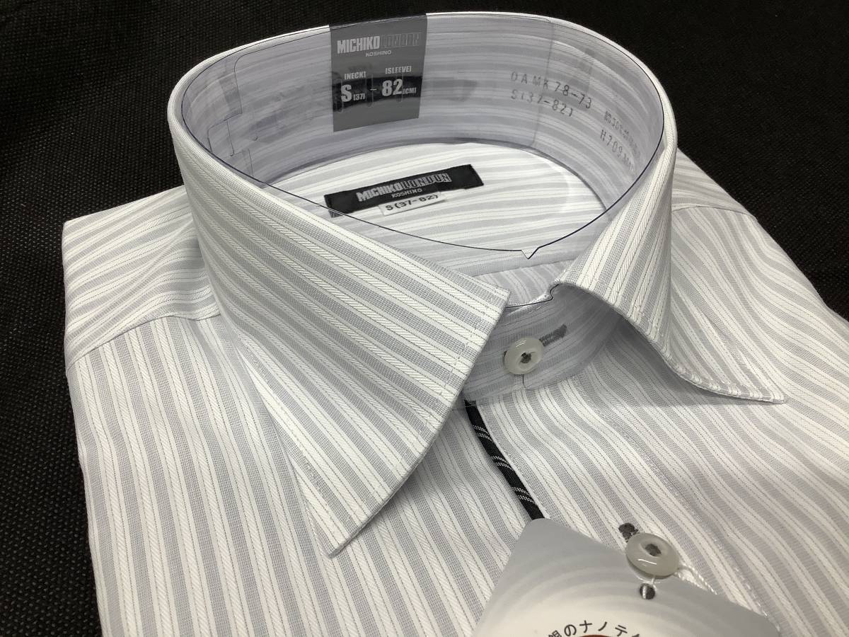 37-82 Sサイズ 新品ミチコロンドン お洒落なワイドカラーカッターシャツ 形態安定加工 スッキリシルエット シルバーストライプ