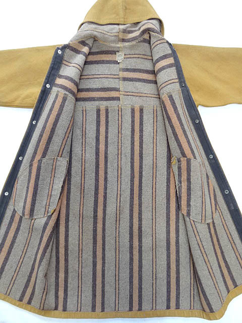 ビンテージ 希少 40S 50S ブラウン フード ウォーマー コート ブランケット ライニング プリント ステンシル ロデオ 茶 ロガー スリーブ 珍