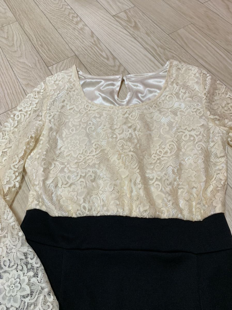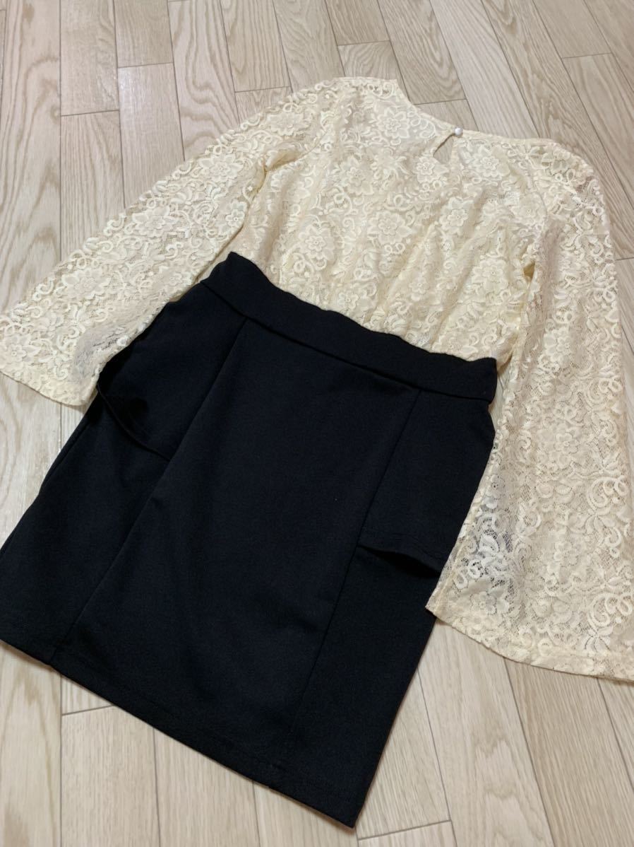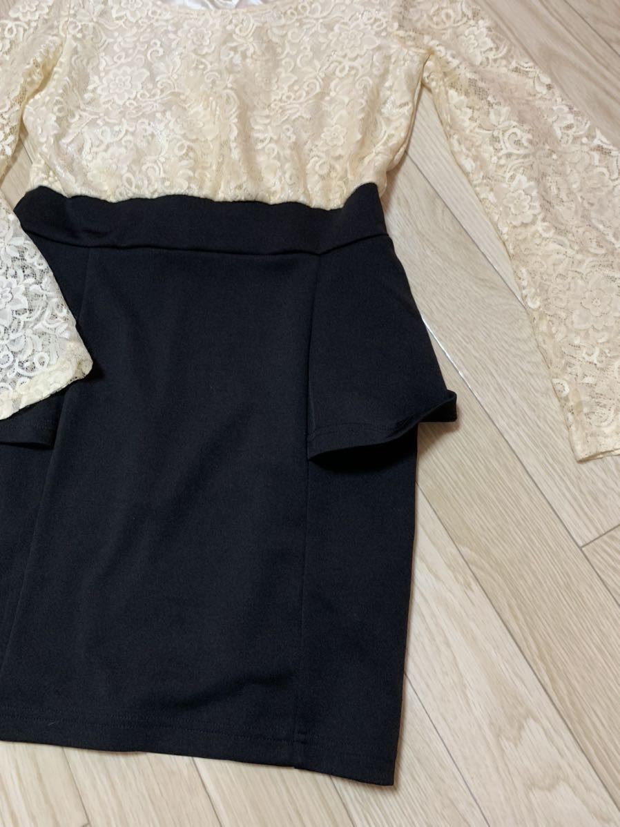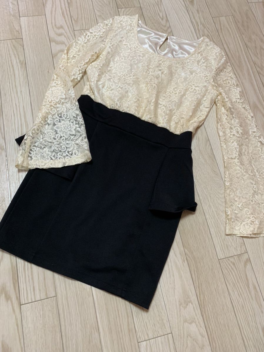 N418/ミニワンピ/クリーム×ブラック/レース柄/
