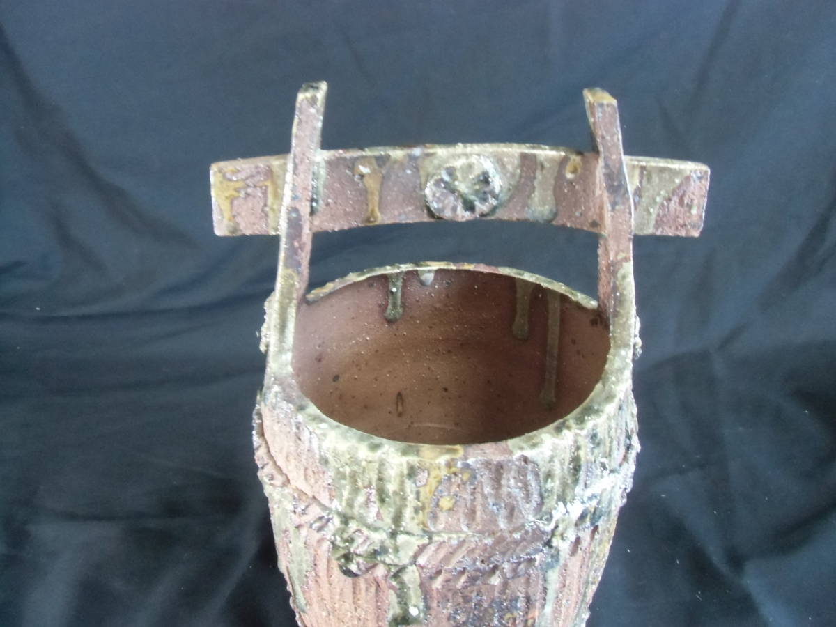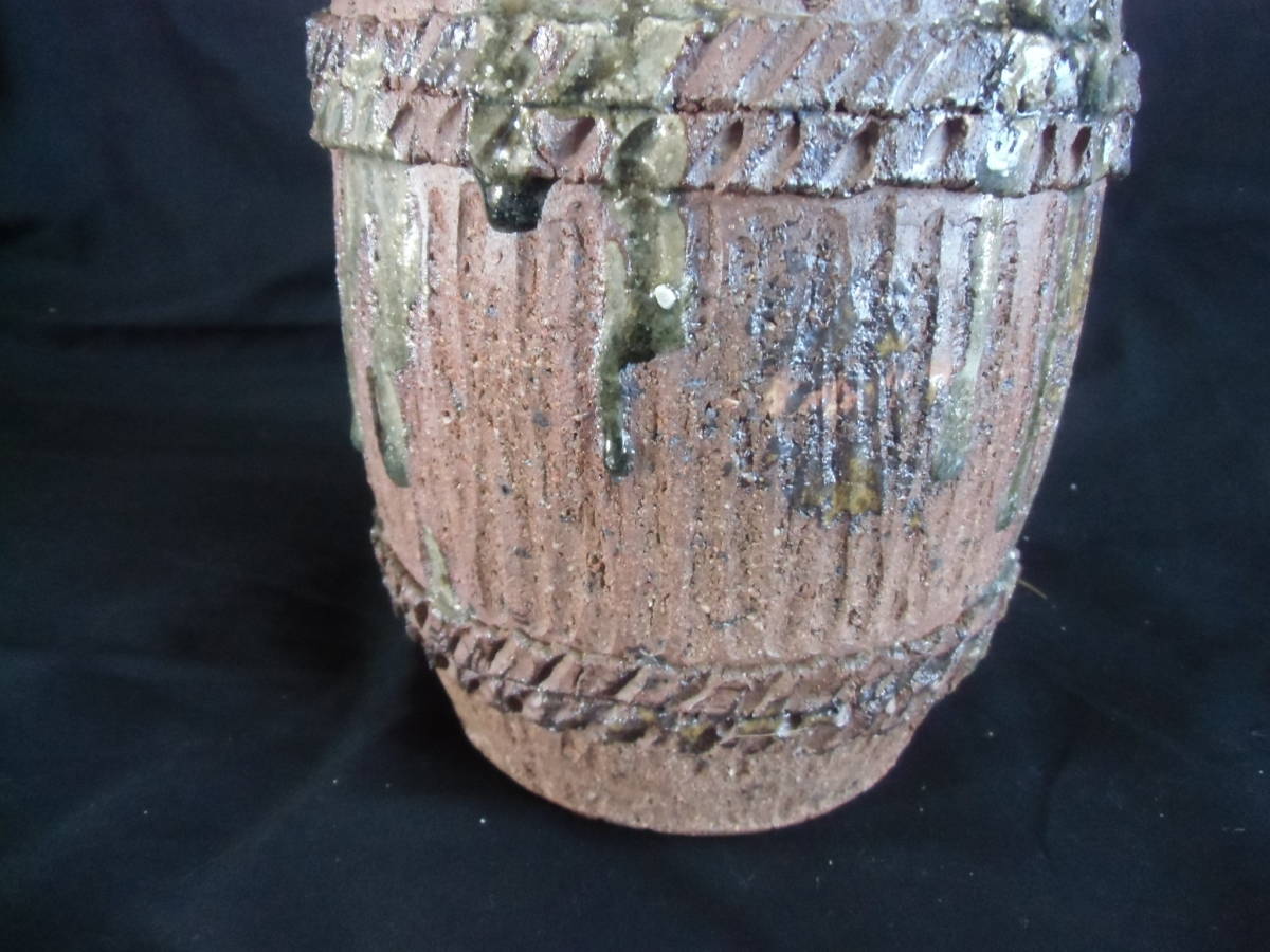 常滑焼、陶芸作家物、組み手造り一品作、観賞壺、花瓶
