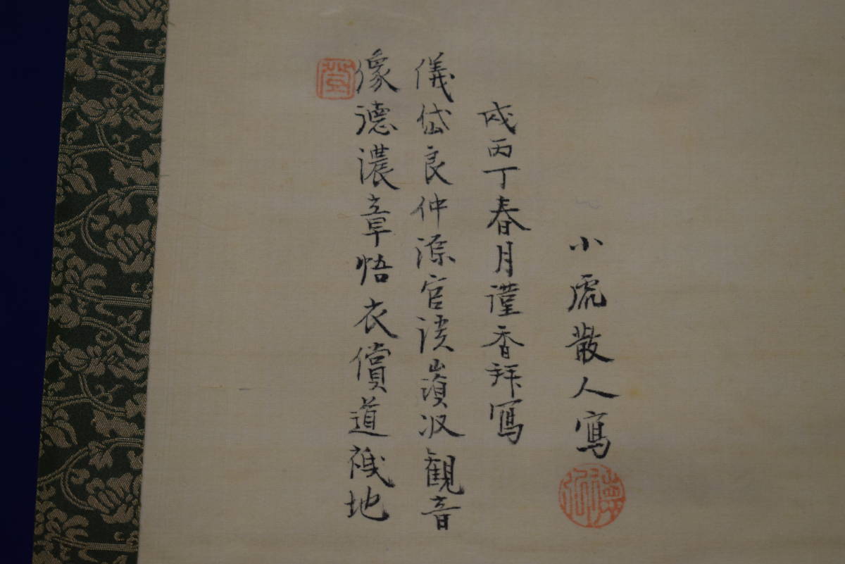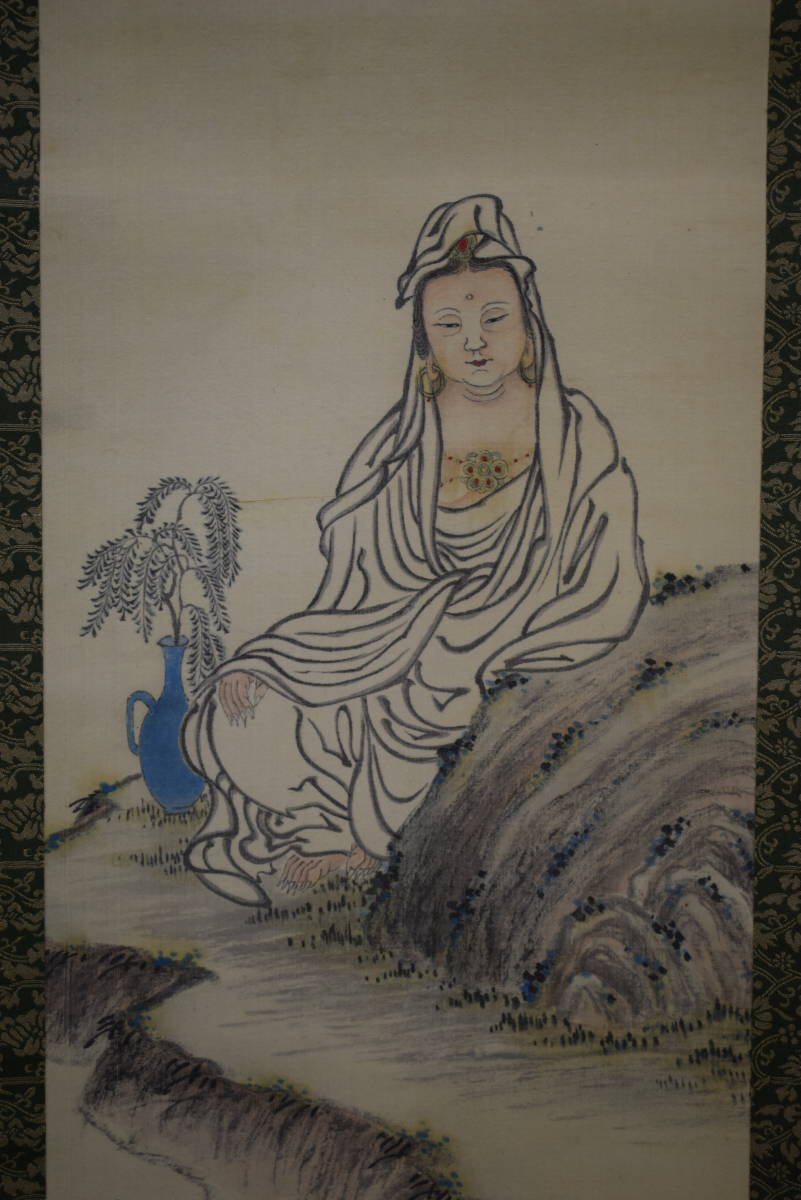 【真作】//田能村直入/小虎/観音画賛/布袋屋掛軸HH-419