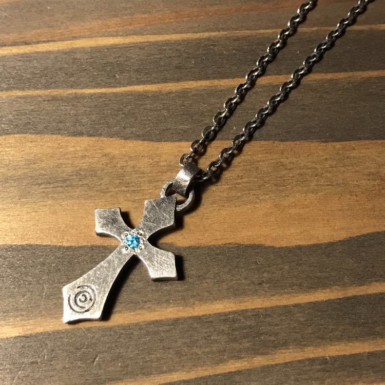 シルバーアクセサリー ハンドメイド クロス ターコイズブルー シンプル ペンダント ネックレス 十字架 チェーン付き