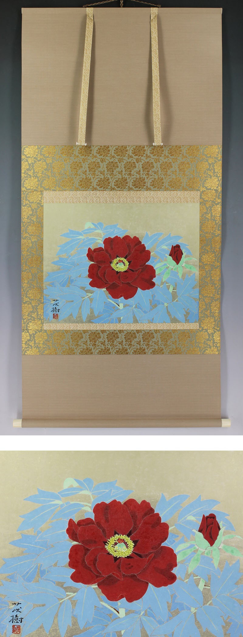 | №1601081 名品【真作】黒光茂樹【牡丹】◆紙本◆共箱◆太巻◆二重箱◆掛軸 | |