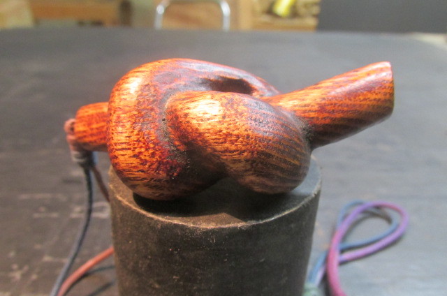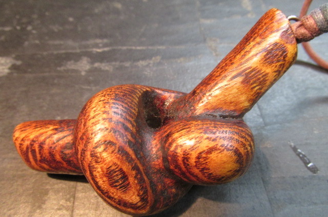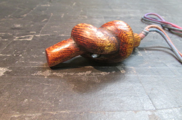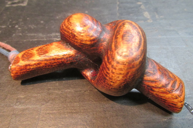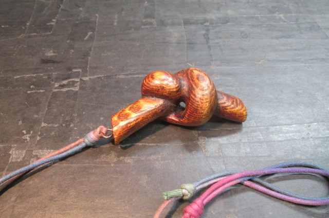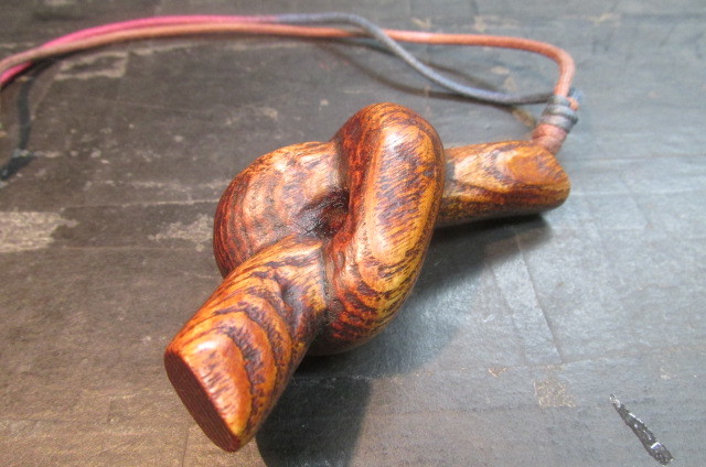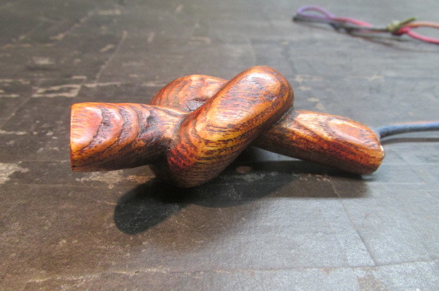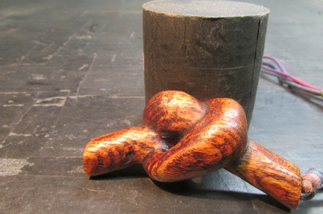 木目が大胆で逞しいタモのブロックを使って木を結んだところを彫刻刀を使って彫り出し結びペンダントを作ってみました。仕上げは木目を美しく強調するこっとの出来る拭き漆技法を使って仕上げました。