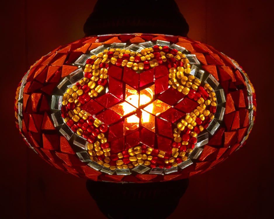 モザイクランプ職人がビーズとステンドグラスを一つずつ丁寧に張り合わせたハンドメイド作品となっております。
