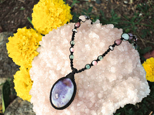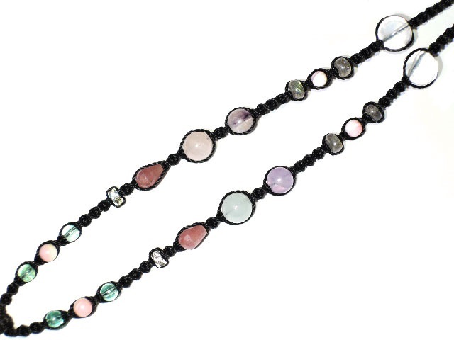 ★癒し系★ティファニーストーン★天然石ネックレス★ハンドメイドマクラメ編み★ピンクサファイア べリル ヒーリングストーン★kamesan