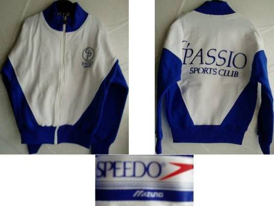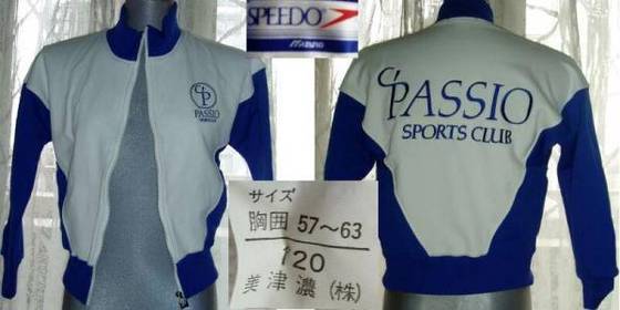 子供 120/ジャケット 男女兼用 ジャージ スポーツウェア/白.濃青/美津濃 SPEEDO P'ASSIO SPORTS CLUB スポーツジムロゴ/USED