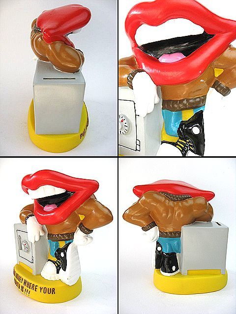【アメリカのゼネラルフード社のキャラクター!1988年製 Tang Lips タングリップス ビンテージ 貯金箱です!PVCより貯金箱の方が中々出て来ない一品です!大きさもあるのでお勧めです!裏ブタ無しですのでSALE価格です!】