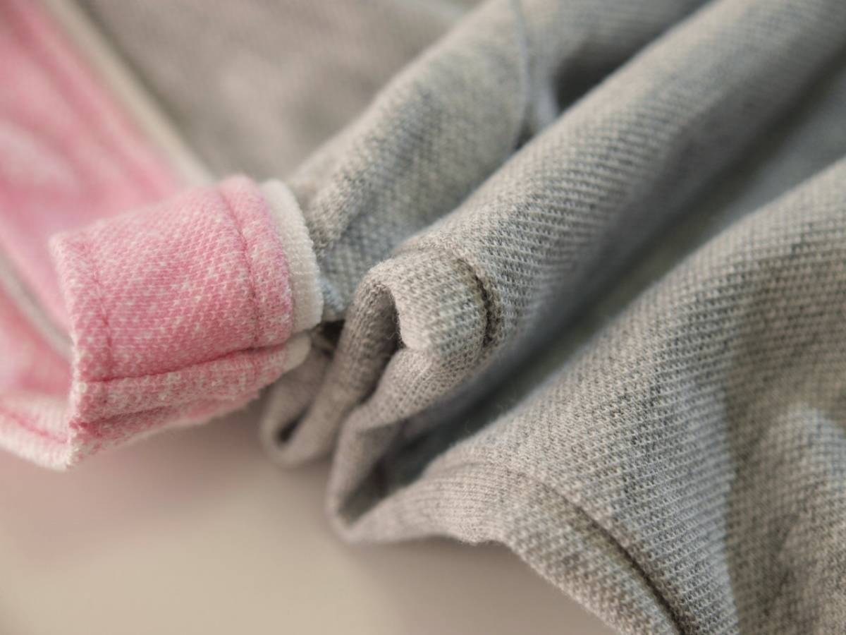商品の補足説明(主観的な内容も含む) 汚れや傷はなく、襟・袖もキレイで、使用感は少なめです。 色は明るめのグレーで、襟元と袖口は薄めのピンクです。 |