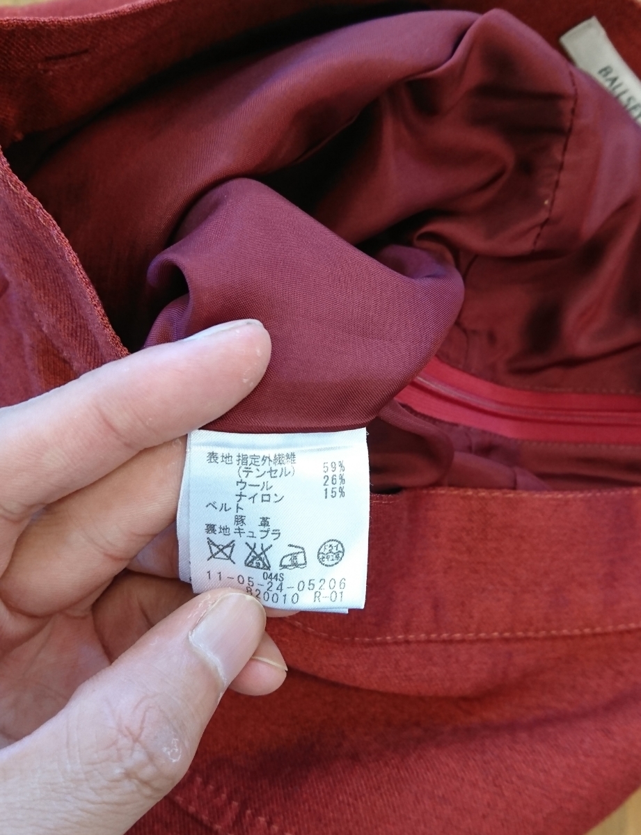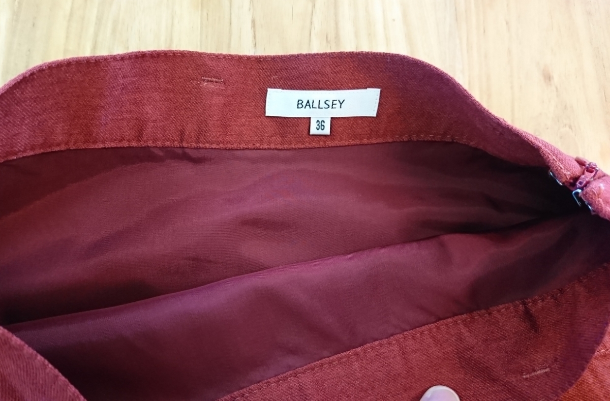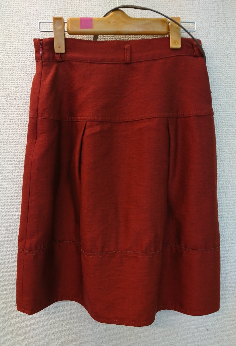 TOMORROWLAND BALLSEYのワインレッドカラーのテンセル膝丈スカートになります。