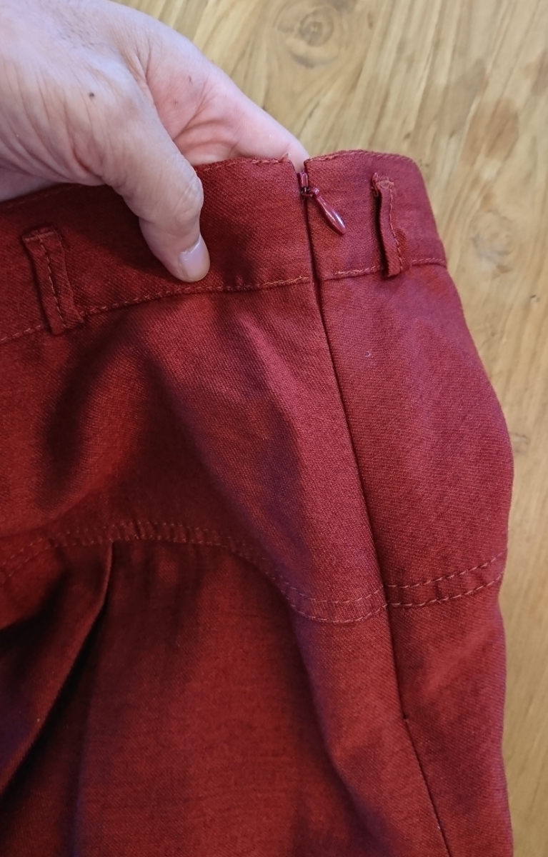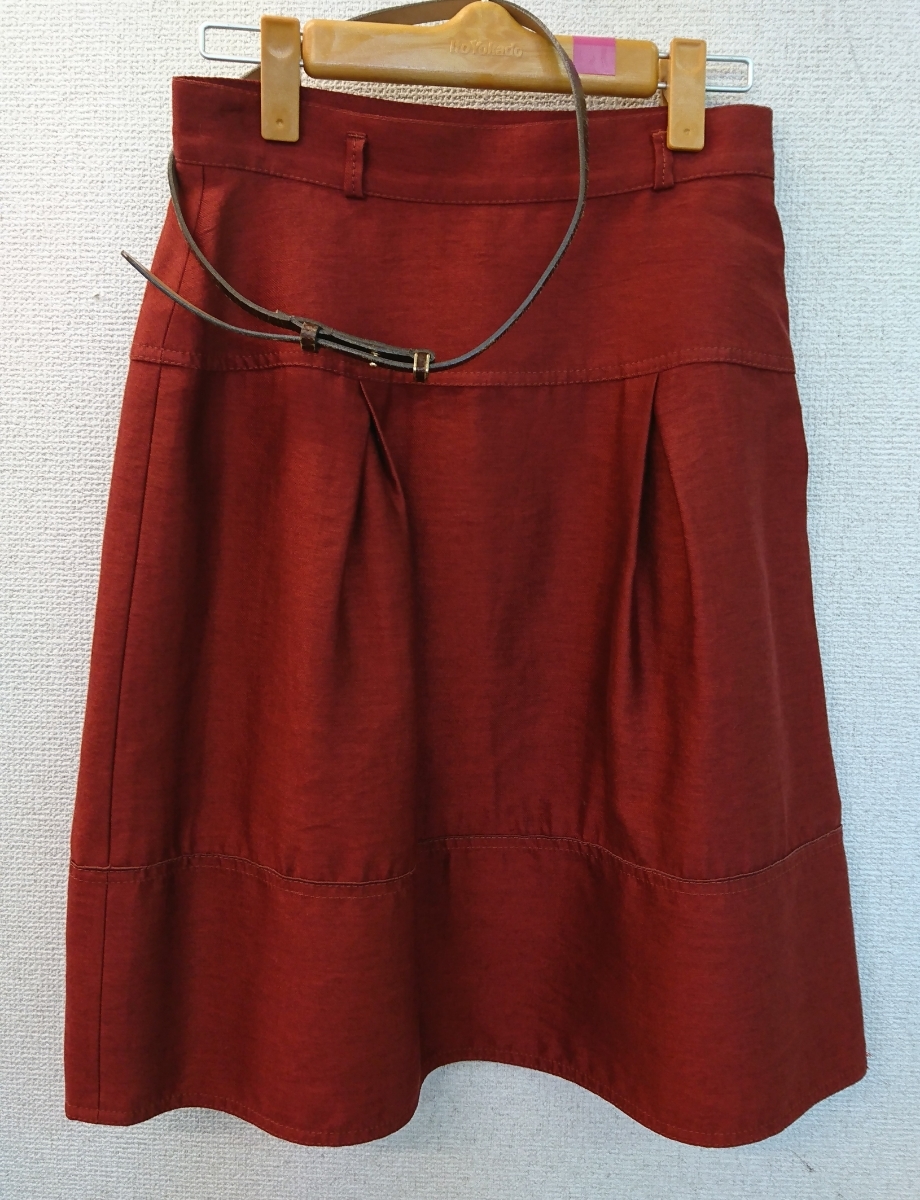 テンセル 膝丈 ベルト付き スカート ワインレッド