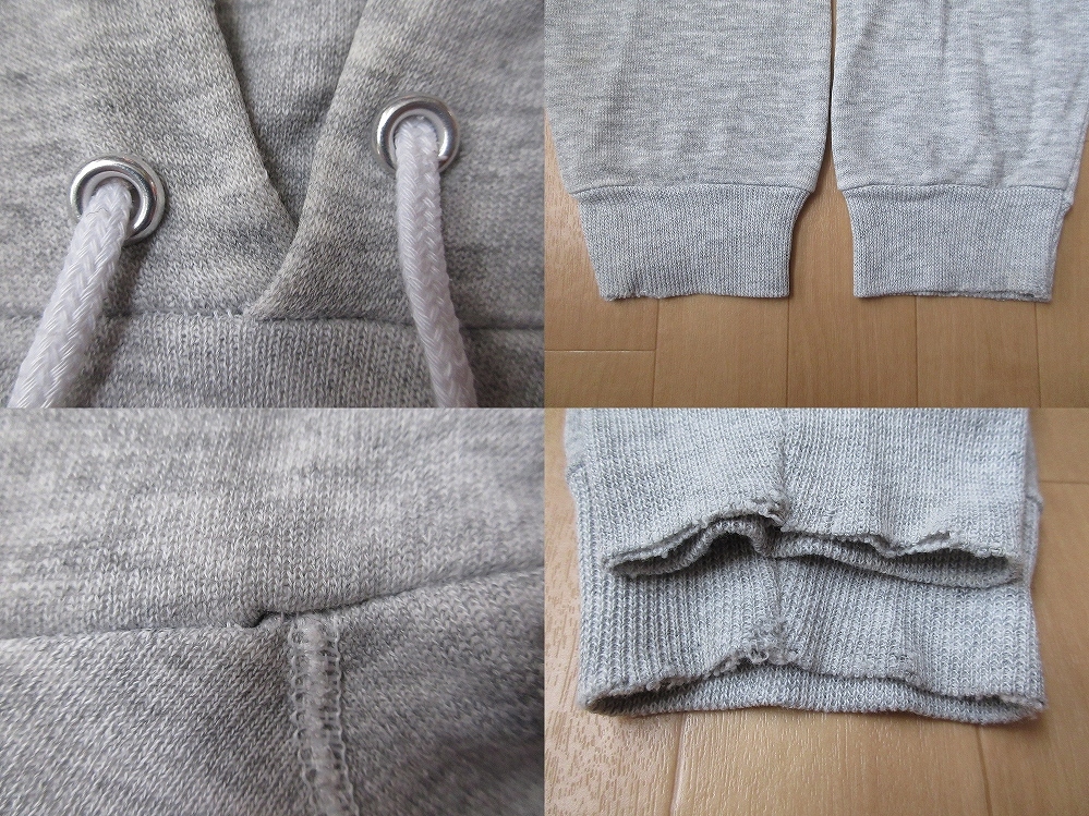 パーカー表面のフードと左肩付近のボディの付け根の縫製部に1点、裏面のボディと左腕の付け根の縫製部に1点ほど、1cmほどのステッチ切れ、解れ、綻びによる穴・破れが見られます。