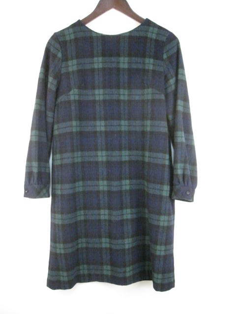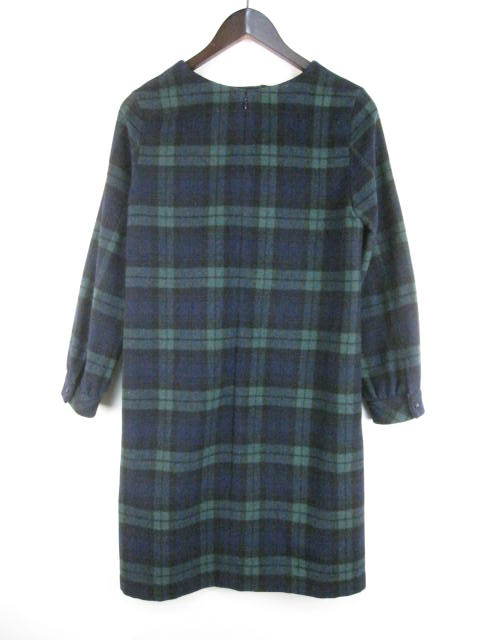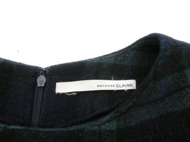 メルローズ MELROSE CLAIRE ワンピース ひざ丈 チェック ウール グリーン ネイビー D675