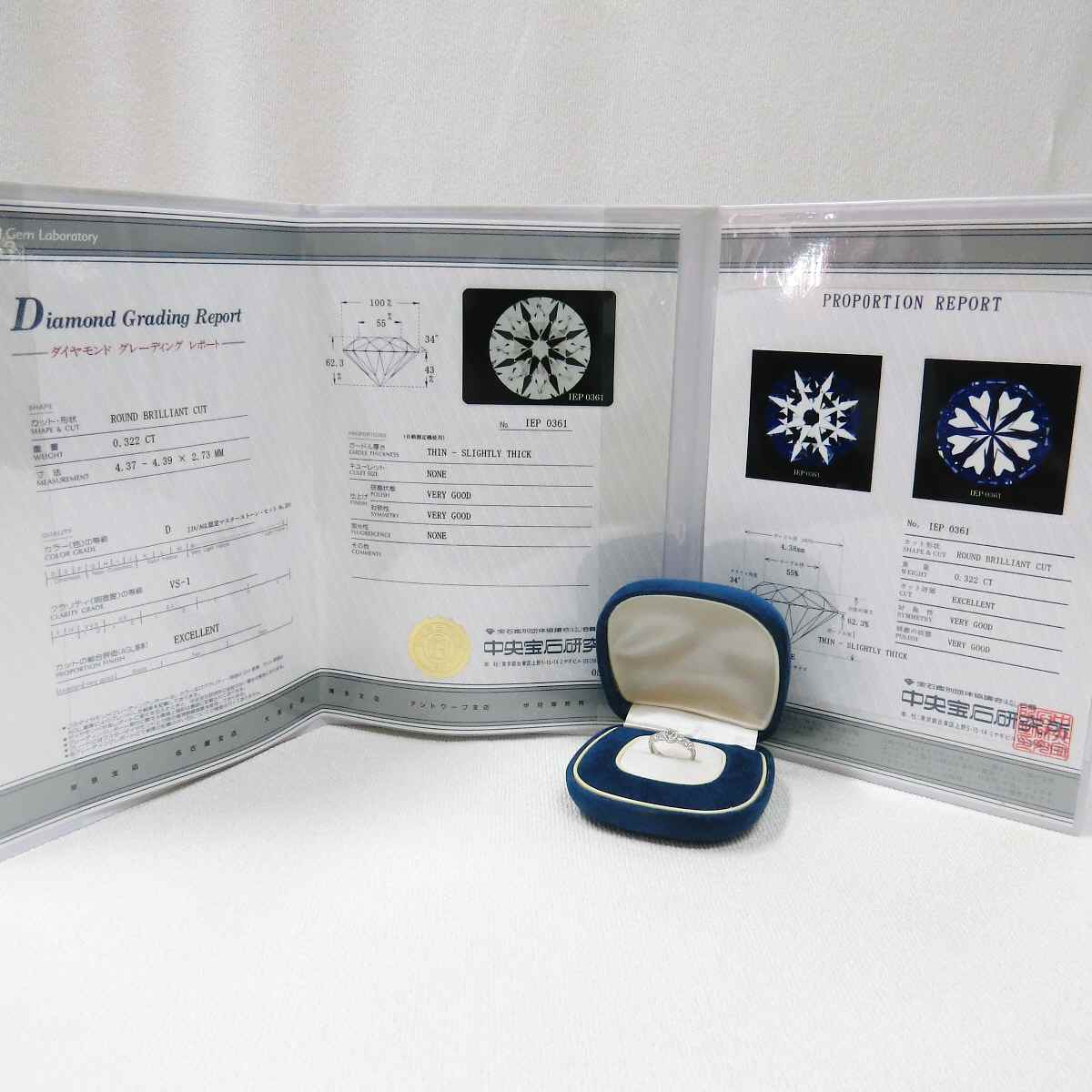 付属品は、中央宝石研究所のダイヤモンドグレーディングレポート(3つ折)です。