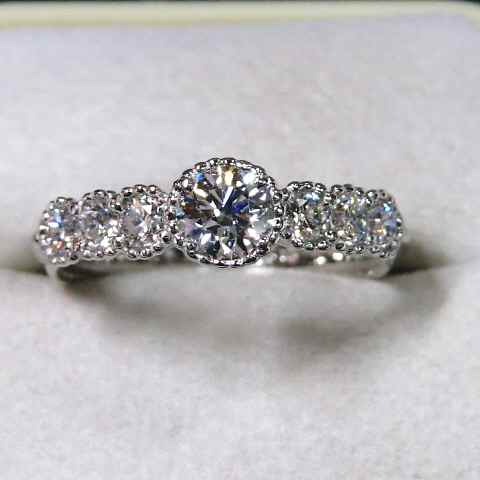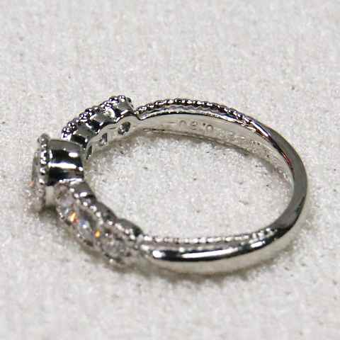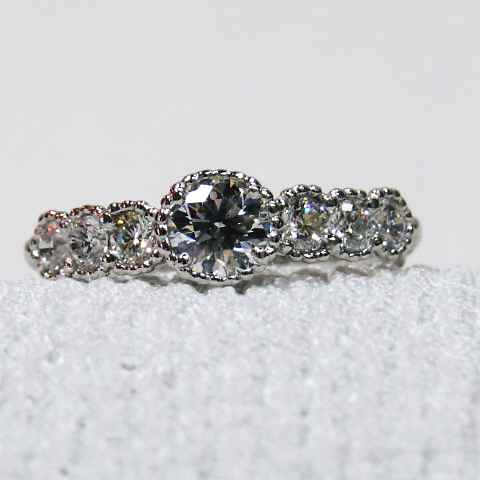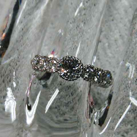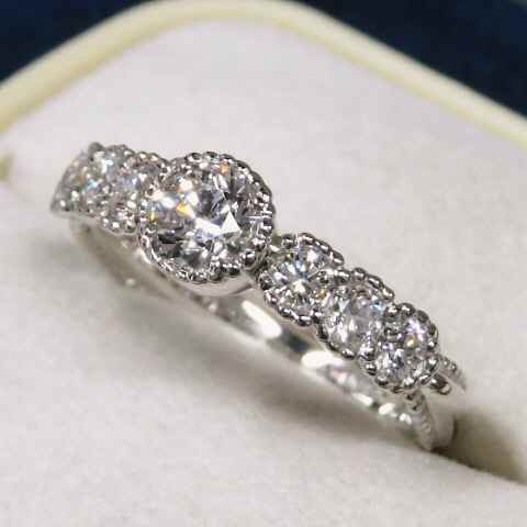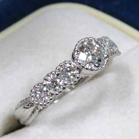 エクセレントカット(ハート&キューレット;最高級レベル)のダイヤの輝きがひと際眩しい、可愛いデザイン性のプラチナ製ダイヤリングです。