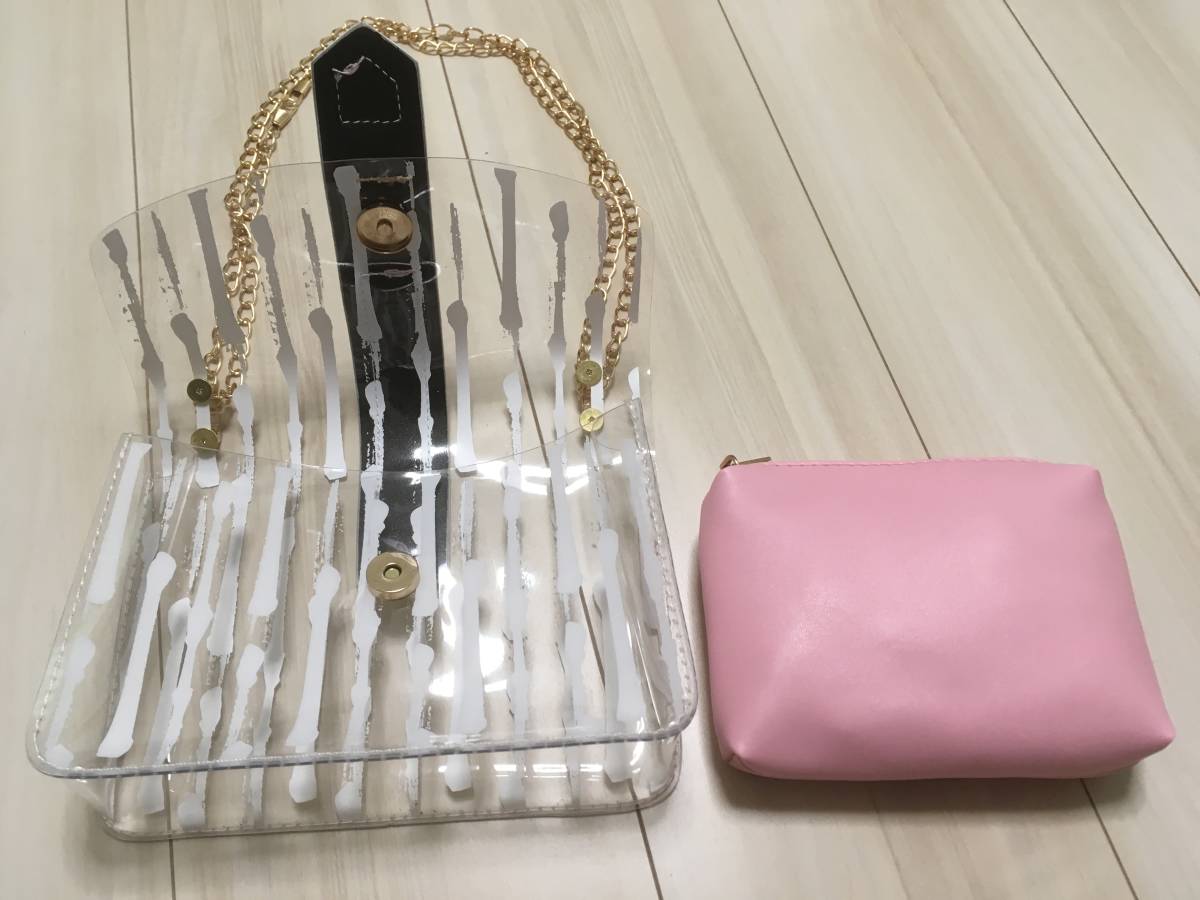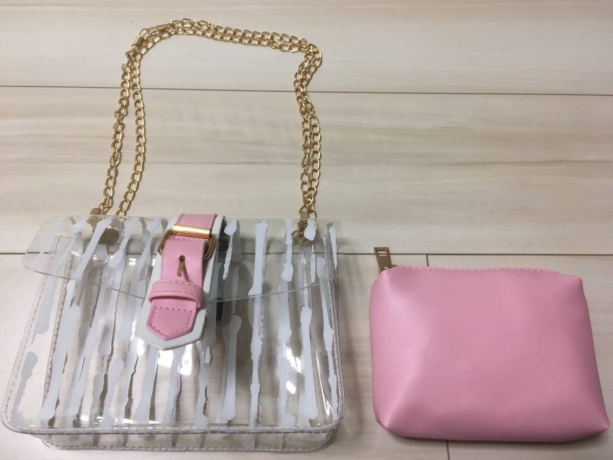 レディース ミニショルダーバッグ クリアチェーン ポーチ付き ピンク色 | |||